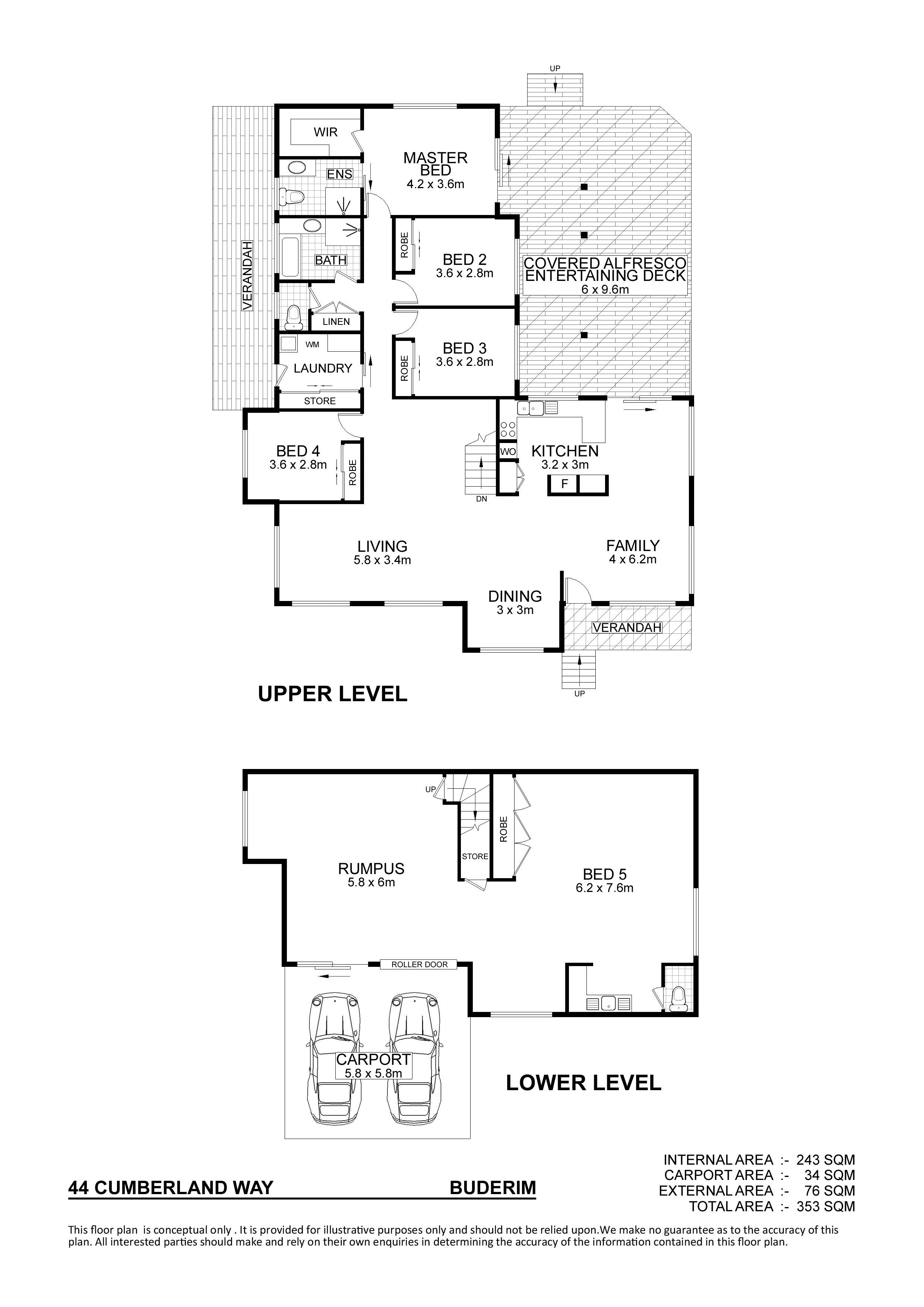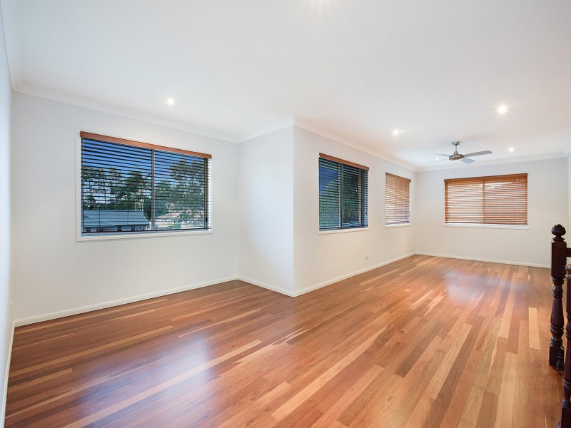 Tour the upstairs: rosewood timber kitchen with gas cooktop; 4 bedrooms (the main bedroom with spacious ensuite and walk-in robe); bathroom with shower and bath; separate toilet; a laundry with plenty of cupboard space - no shortage here.