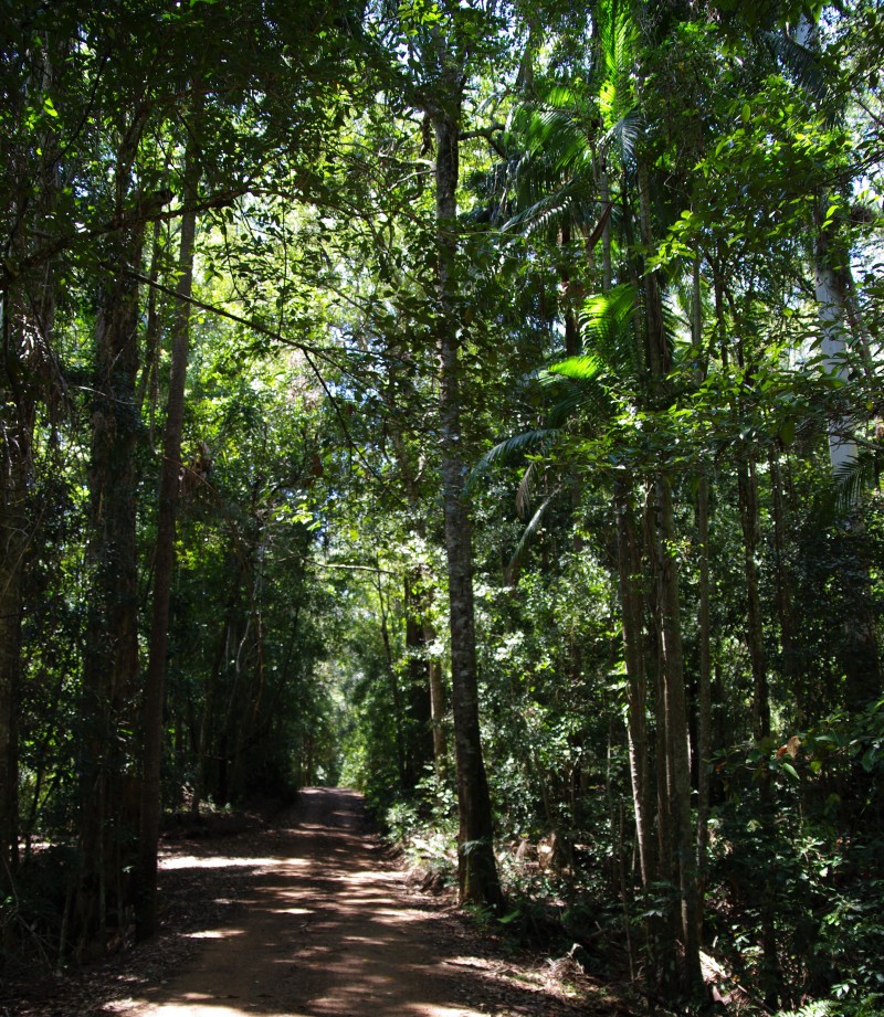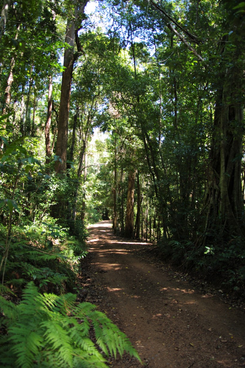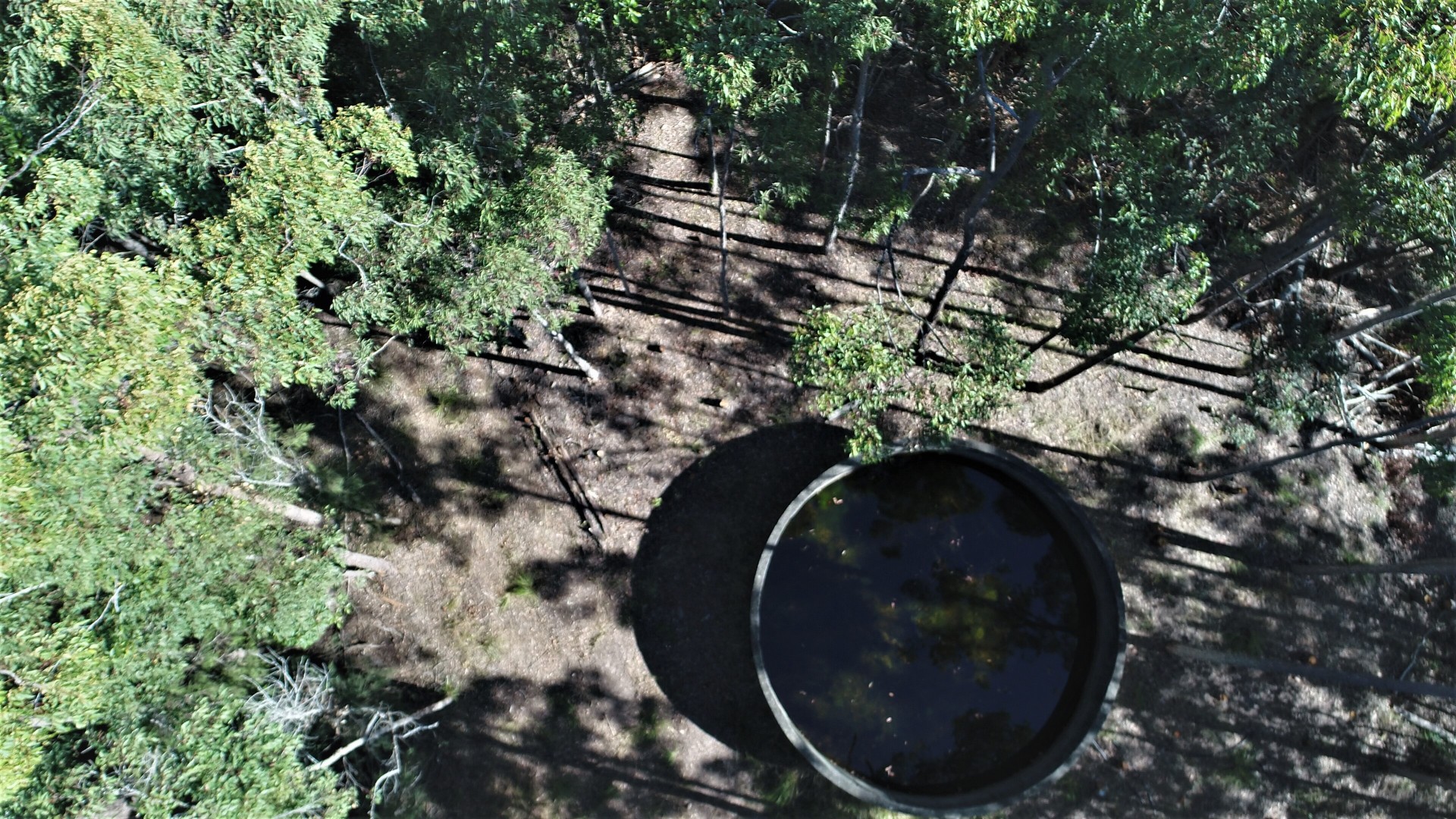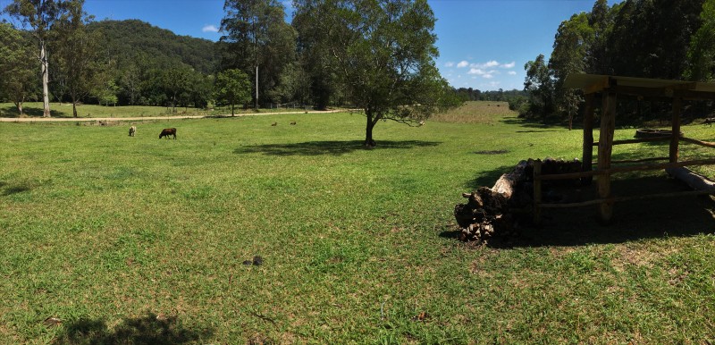 The area in between the Rainforest and cleared land is separated by a ridge with natural bushland, with a large concrete water reservoir on top.