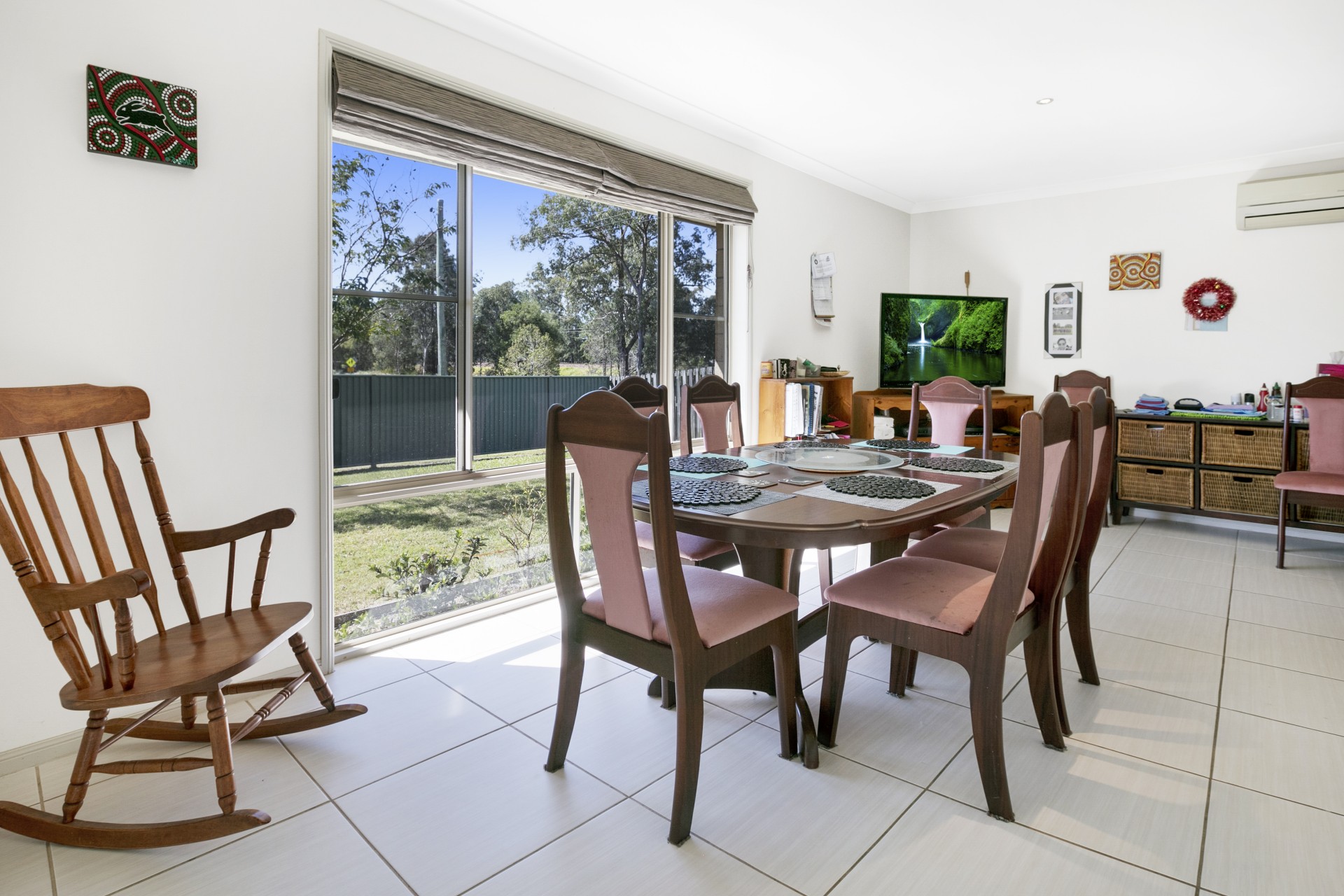 • Second L-shaped living / dining area adjoins the kitchen, has a large split system airconditioner keeping you cool when in the kitchen, has double glass sliding doors through to the undercover outdoor entertaining area and yard