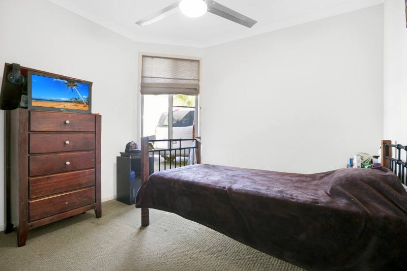 • Bedroom 2 is located closer to the Main bedroom which would be ideal for a young family with new baby to have close to Mum and Dad could fit king size single and bedside tables has built in wardrobe and stainless fan