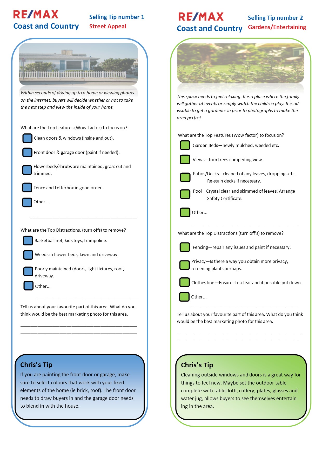Our new Home Seller Tips "Getting your property ready for sale" are now available. Click on the links below.