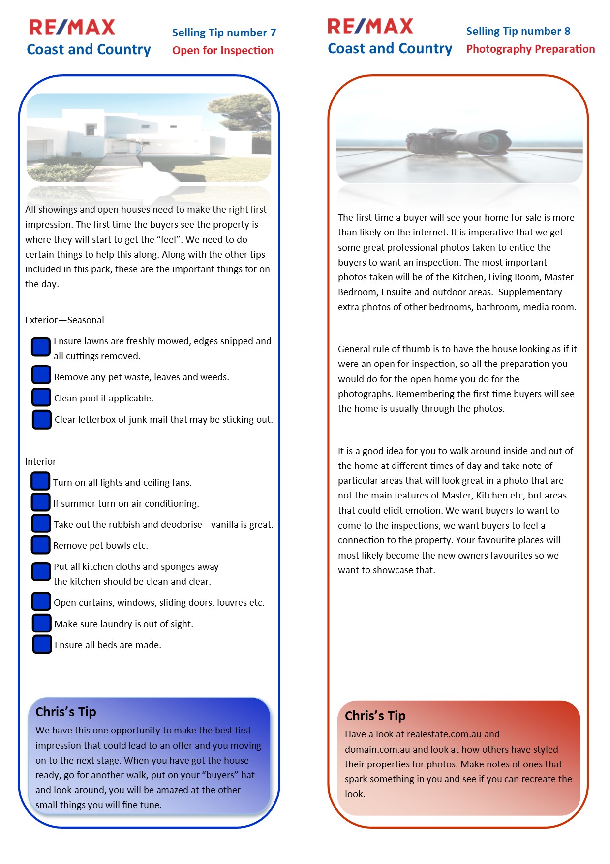 Selling Tips 7 & 8 - Open for Inspections and Photography Preparation